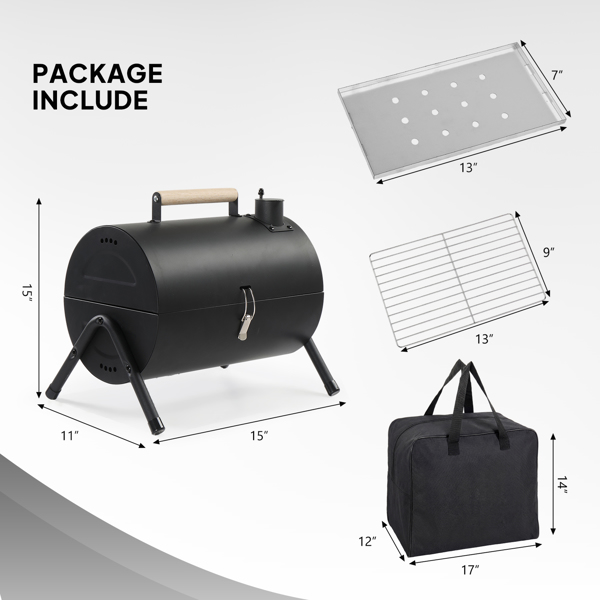 1. Portable Charcoal Grill: Featuring a compact design with a convenient wood handle and a dedicated carry bag, this grill is perfectly suited for BBQ, camping, beach outings, picnics, and trips, effortlessly serving 4 to 5 people.
